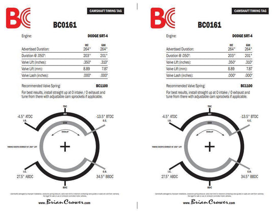 Brian Crower ステージ 2 カムシャフト | 2003-2005 ダッジ ネオン SRT-4 (BC0161)