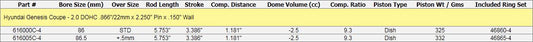 Manley Performance Platinum シリーズ ピストン (ヒュンダイ ジェネシス 2.0T)