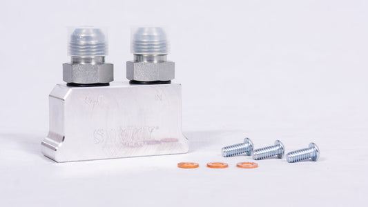 Sikky Manufacturing - オイルパンアダプターブロック、サイドポート、リモートオイルフィルターライン用 -10ANフィッティング付属 (SM-OPB-02)