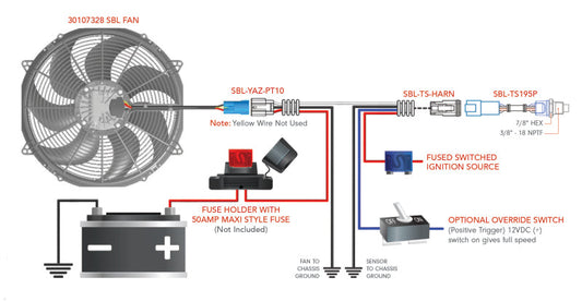 SPAL 16インチ(406mm) 高性能フラッシュマウント500W密閉型ブラシレスファンキット、コントロールセンサー/ハーネス/ジャンパー付き