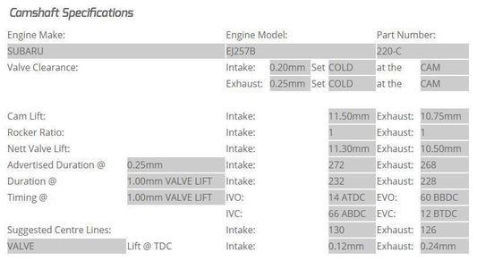 Kelford Cams 220-B カムシャフト | 2004-2021 スバル WRX STI (220-B)