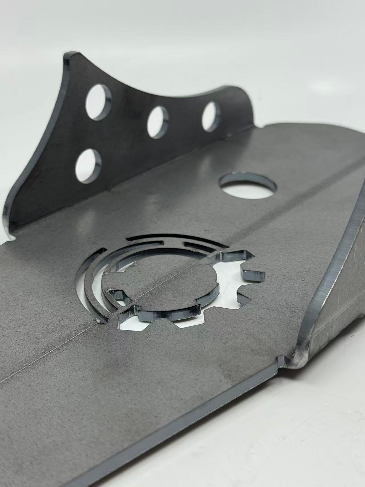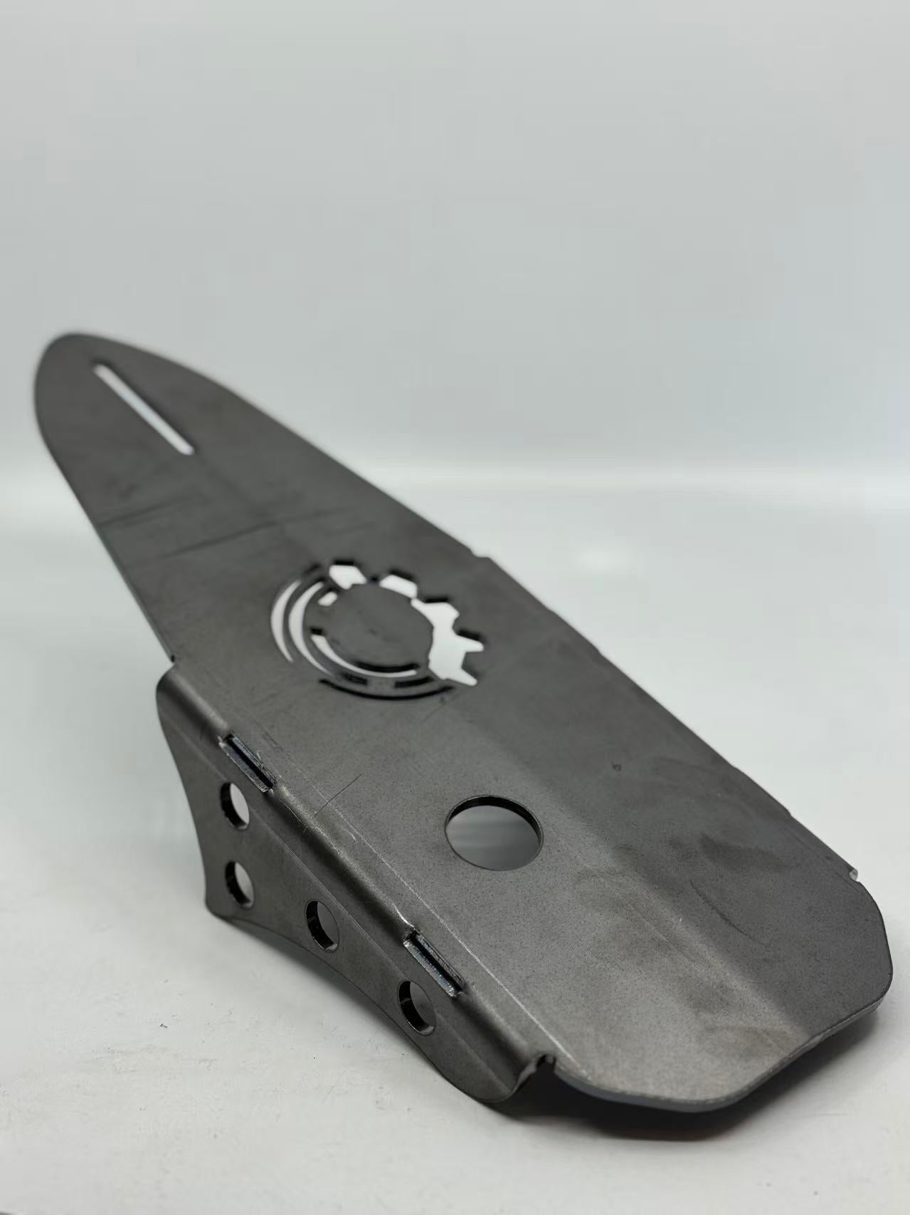 Speed Tek 10インチ クイックチェンジ用 スキッドプレートは、350MPa 高強度スチールを使用したデフ用保護プレートです。クイックチェンジデフはデフ本体の強度を高めるために各ギアなどの部品が大きい為、取り付け位置によってはロードクリアランスが問題となります。その中でも最もダメージを受けやすい部分はデブ部後方の下側部分で、このスキッドプレートを取り付けすると路面干渉からデフを保護することができます。