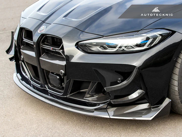 AutoTecknic GT4ドライカーボンファイバーカナードをご紹介します。BMW G8Xのフロントエンドのハンドリングを向上させる究極のソリューションです。軽量で耐久性の高いカーボングラファイト複合材を使用したこれらのカナードは、空力特性を向上させるだけでなく、G80 M3とG82/G83 M4のパフォーマンスをさらに向上させます。