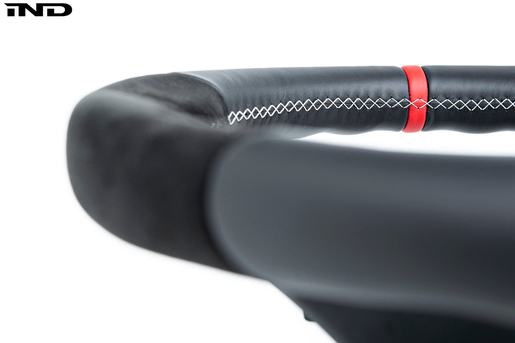 Mパフォーマンス・ステアリングホイールは、そのグリップ力の高さからモータースポーツで広く使用されているアルカンターラを採用していることが特徴です。そのため、大きなサムレストを備えたアルカンターラのグリップエリアは、ドライバーに最高のグリップ力と非常にダイレクトなステアリングフィールを提供します。さらに、モータースポーツにインスパイアされた特徴として、12時位置の赤いセンターマーカーと、シルバーグレーのハンドステッチ仕上げが挙げられます。アルカンターラとレザーで覆われたステアリングホイールの表面を引き立てるオプションのMパフォーマンス・ステアリングホイール・トリム(カーボン/アルカンターラ、カーボン/レザー)は、それぞれMパフォーマンスのロゴが入り、お好みのスタイルに合わせてお選びいただけます。カスタム張り地のオプションについては、カスタマーサポートまでお問い合わせください。