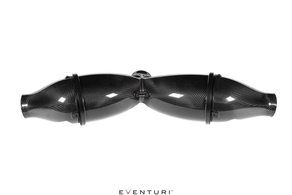 Eventuri 991 GT3 RSインテークシステムは、特定の目的を果たすように設計され、最高水準で製造された複数のコンポーネントで構成されています。グラスファイバーを一切使用せず、100%プリプレグカーボンファイバーを使用することで、滑らかな内部表面を実現し、よりスムーズなエアフローを維持します。各コンポーネントの詳細と、その背後にある設計理念は以下のとおりです。