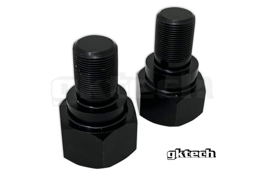 GKTECH 高張力 4130 亜鉛コーティングされたタイロッド エクステンダーは、標準またはアフターマーケットのタイロッドの端にねじ込み、タイロッドがステアリング ラック内にさらに移動できるようにして、ステアリング ロックを強化します。ドリフトや駐車スポットからの脱出に最適です。