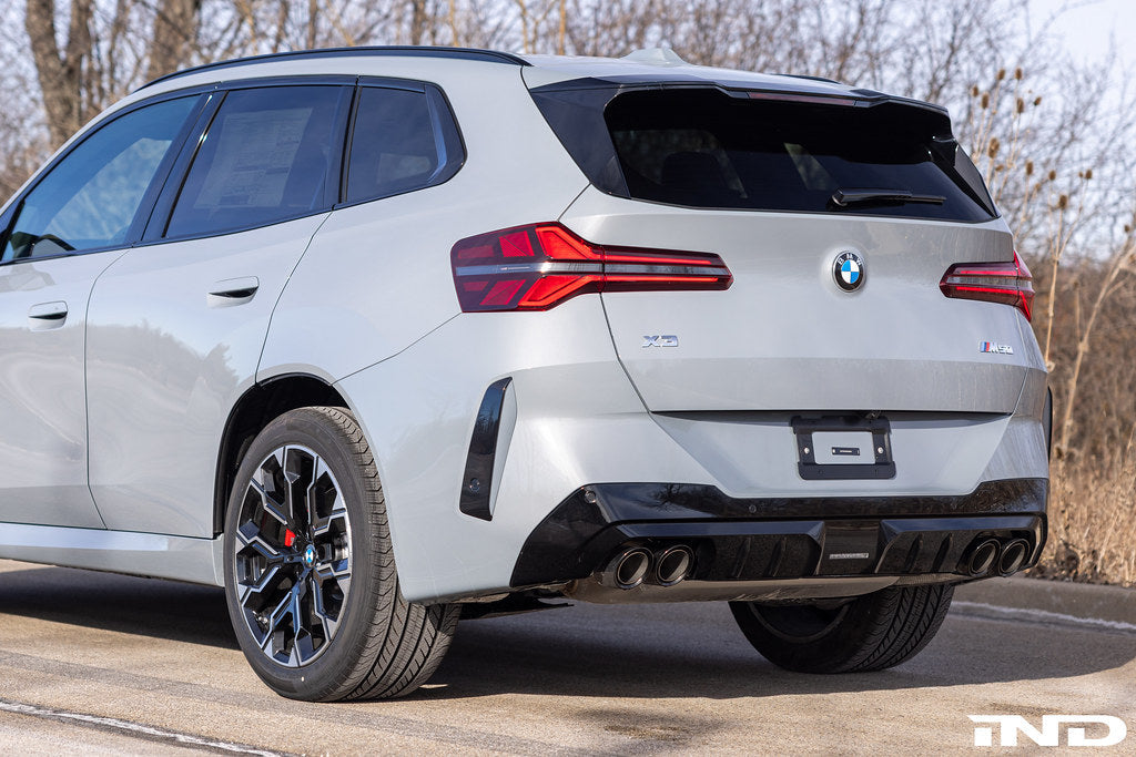 BMW G45 X3 M-Sportのリアビューを、IND G45 X3 M-Sportモデル用塗装済みリアリフレクターセットでアップグレードしましょう。純正に装着されている赤いリフレクターと交換するこのセットは、車両のリアM-Sportバンパーと凹型リフレクターエリアにシームレスに溶け込む、洗練されたカラーマッチングまたはグロスブラックの代替品です。各リフレクターは、BMW純正の塗装コードを使用して社内でカスタム塗装されており、X3の純正の仕上げに完璧にマッチします。