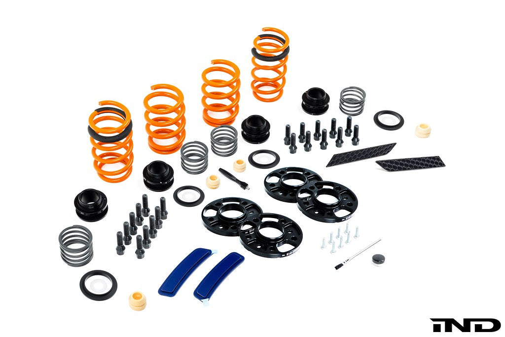 INDの新しい外観パッケージは、G90 M5の外観を総合的にアップグレードし、見る人にその違いをはっきりと認識させるという、その名の通りのパッケージです。おなじみのリフレクター・コスメティック・パッケージは、一般的な外観強化の一部を交換することに重点を置いていますが、この新しいお得なパッケージには、ASTの車高調整式スプリングキットに加え、FCボルトオン・ホイールスペーサー4輪セットが含まれています。