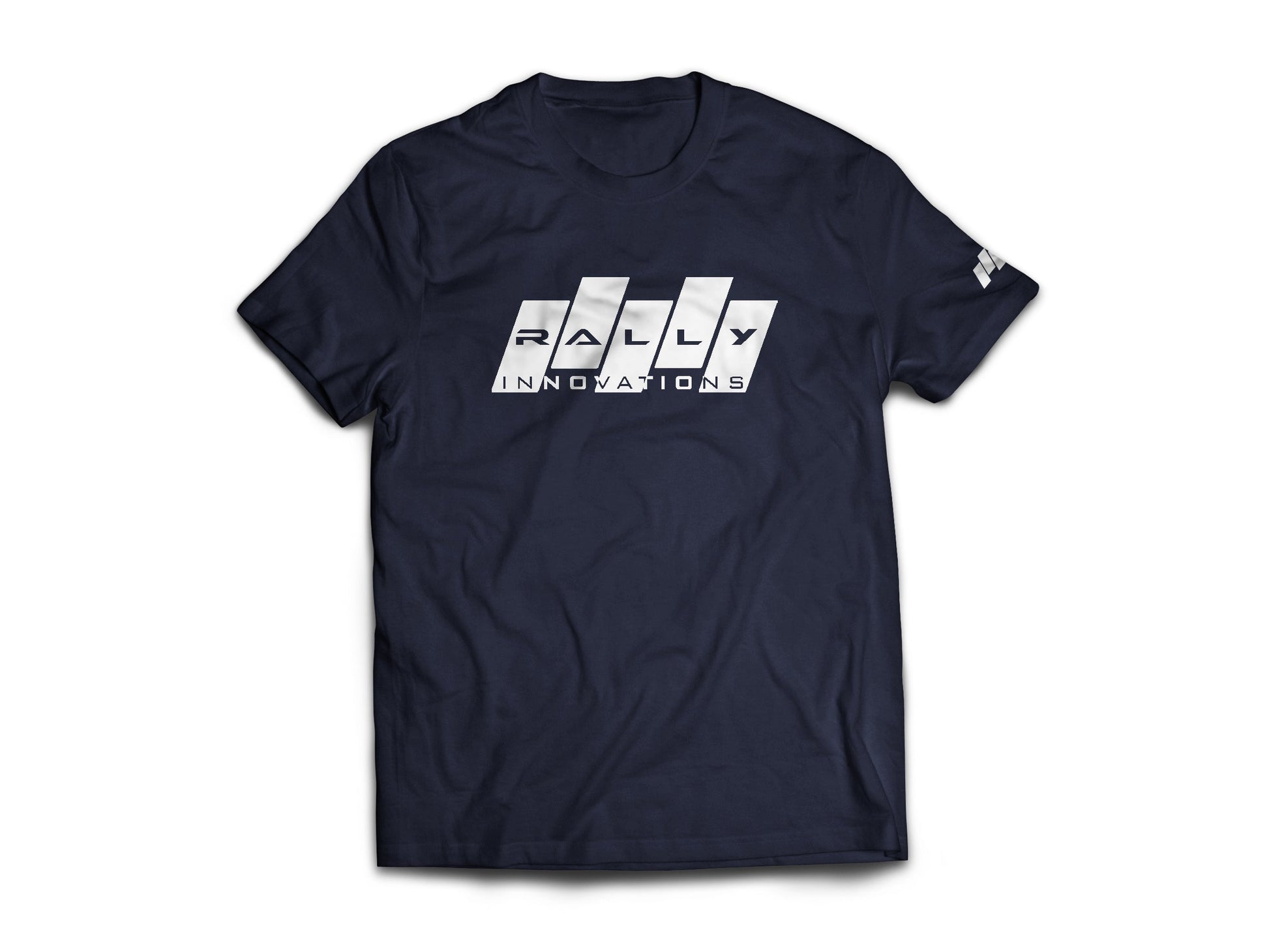 Rally Innovations タイプロゴ T シャツは、クラシックなデザインを現代風にアレンジしたデザインです。ミニマリストスタイルにインスパイアされています。