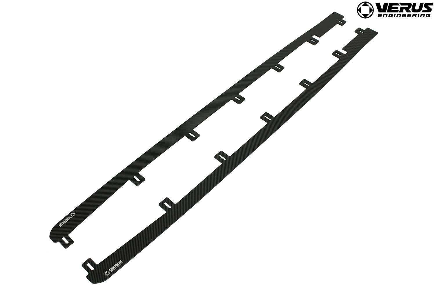 Side splitters really complete the appearance of your WRX or STI. Verus Engineering set out to not only make something aesthetically pleasing, but functional as well. Our side splitters feature a horizontal side splitter which reduces the amount of high-pressure air making its way to the bottom side of the car. This high-pressure air typically produces lift, by reducing this, we reduce the lift or create down force from adding this component. With our design, we were able to reduce vehicle lift by 8 points while only increasing drag 2 points, which translates to a very efficient design. Constructed from carbon thermoplastic, we have a strong, durable and lightweight component that also looks quite nice.